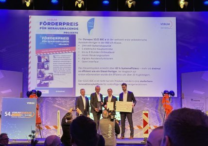 Dynapac wins the VDBUM sponsorship award with the electric SD25 80C e road paver.