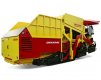Mobile feeders are a transport and conveying system which is used as a non-contact connecting element between road finishing machines and transport vehicles carrying mixed goods. A hopper for mixed goods is used for storing the material, which is transported on a heat-resistant rubber type band to a sensor controlled, automatically height adjusted conveyor at the front end of the feeder.